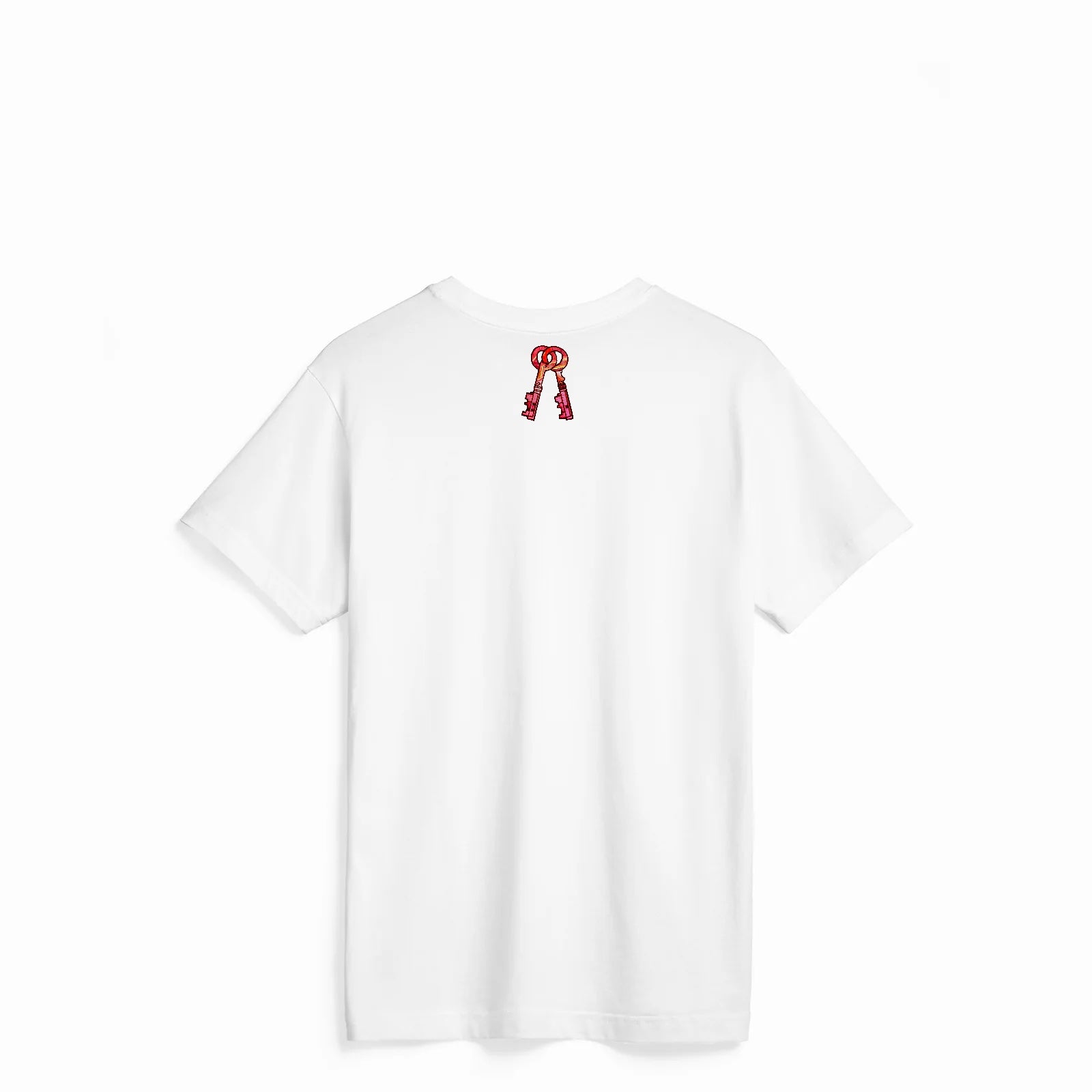 - Embroidered keys on the upper back
